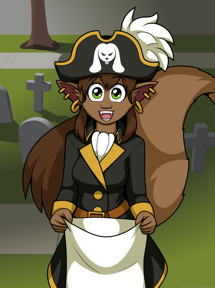 Poll description - Squirrel girl Grace trick treating as a pirate captain. Yes, you read that correctly