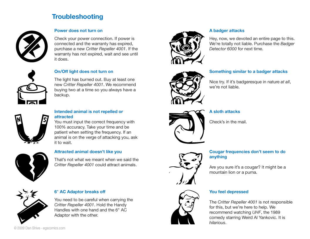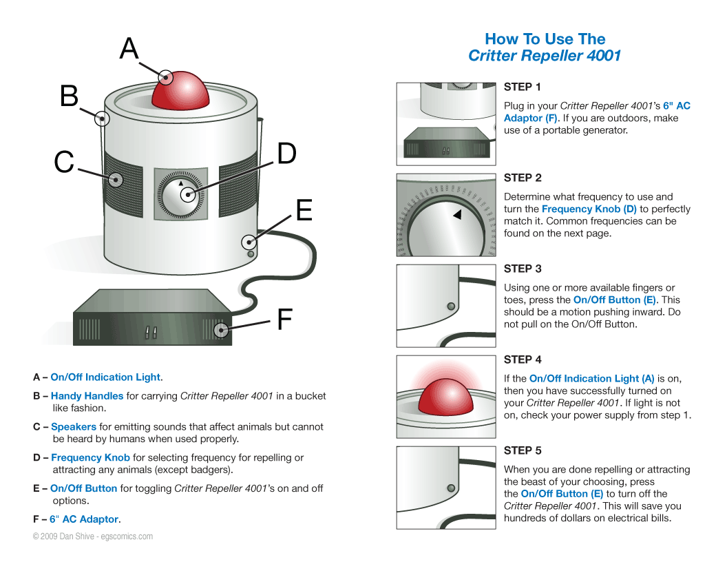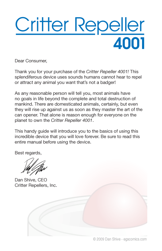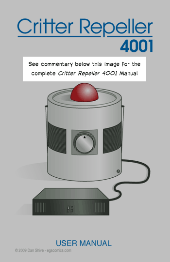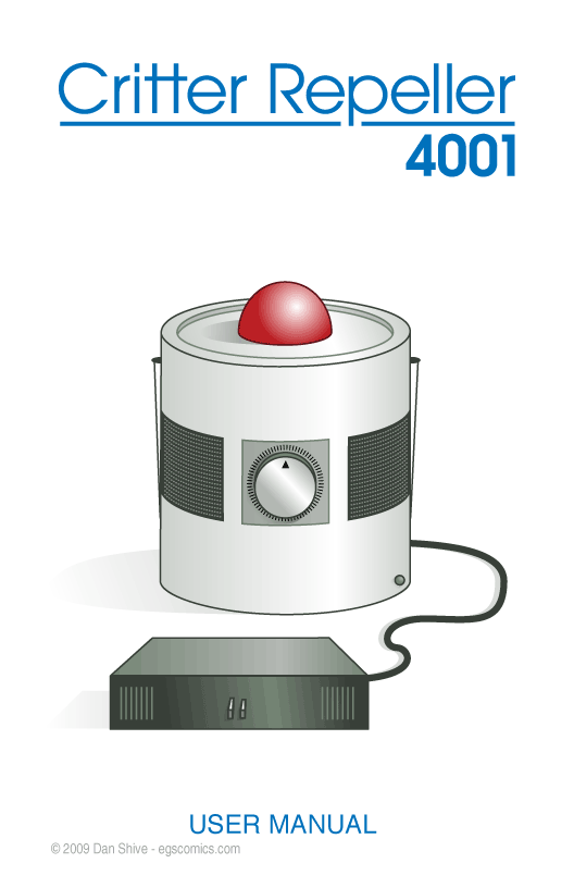 Critter Repeller 4001 Manual*: Cover Page 1 Pages 2-3 Pages 4-5 Pages 6-7 Page 8 * See previous sketchbook for an introduction as to why this abomination exists.