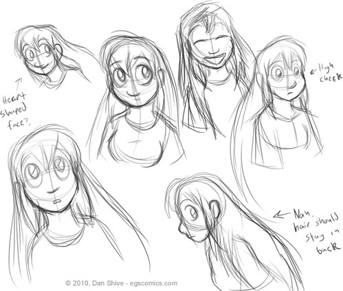 I am SO tired as I'm writing this. So very, very tired. I need to get more sleep. I wouldn't bother bringing that up, but I'm having trouble thinking of fun things to say about these sketches. I tried to shake things up by making Grace's hair come over the front of her shoulders. but the look just doesn't seem as cute to me and it's more cluttered to draw. I'm afraid Grace won't be getting any sort of hairband cuteness upgrade in upcoming comics.