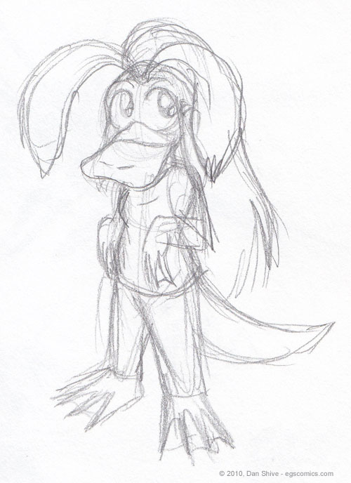 All the other weird bits are also platypus-inspired, but it's merely assumption that they're part of the transformation. I've seen these slippers you can buy, and they make your feet look like bear feet? So she might be wearing platypus slippers. It's just a thought. I'd check, but that rubbery beak is still freaking me out.