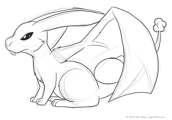 I'm sure there's another bunny dragon somewhere in the sketchbook archives, but I'm a bit too tired to go hunting for it. In any case, I'm interested in revising its look, because bunnies are awesome and dragons are awesome, so a bunny dragon is awesome TWICE. That's pretty awesome.