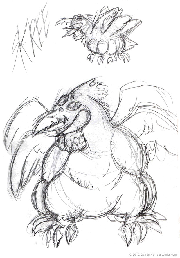 In the history of EGS, there have been many, many, MANY freaky monsters. Four. The Goo, Vlad, Bloodgrem, and whatever the crap was on that one dude's head. While EGS is generally too light-hearted to allow for REALLY freaky monsters with horrific abilities, my sketchbooks are full of monsters like this one. I think it would be difficult to pull off a horror comic in the EGS art style, but I like to think I can come up with some pretty freaky stuff.