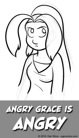 The reason I was going to draw angry Grace was because that's how I've felt the last couple days. I'm not going to claim the days have been horrible. In the big scheme of things, even my video card issues aren't that big. At worst, I'll need a new video card. It sucks, but it's hardly end of the world stuff.