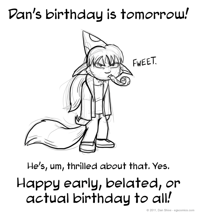 anniversary (sort of) comic's commentary that the comic's anniversary felt like a second birthday. It being earlier in the year, however, I suppose my actual birthday would be my second birthday. Once again, I have hurt my own brain.