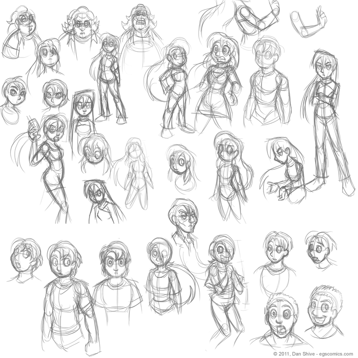 Part of the reason for this sketch fest is that it's been my goal for years (pre-dating EGS) to figure out a structural manner of drawing that I'm comfortable with, which is to say I've been wanting to get a solid feel for using basic shapes as the foundation of my drawings and be consistent with them.