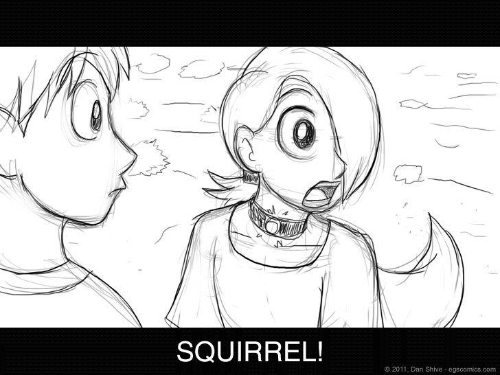 Up. I was pretty much trying to sketch an actual "SQUIRREL!" moment from that movie with Justin and Noah in place of Carl and Doug, respectively. I'm not sure why Noah's wearing the translation collar, though. I'm almost positive he doesn't need it.