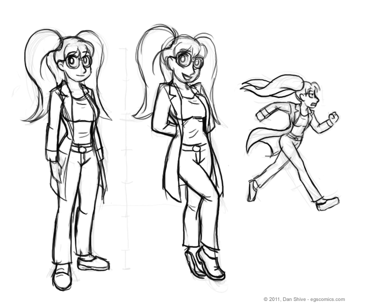 Admittedly, these aren't the only sketches I drew of her. I was out of my drawing groove today, and these are the least horrid of what I drew. Granted, I think these came out okay and might be close to her final revised design, but if one's scale is based on horridness, even the best is going to be rated at some level of horrible.
