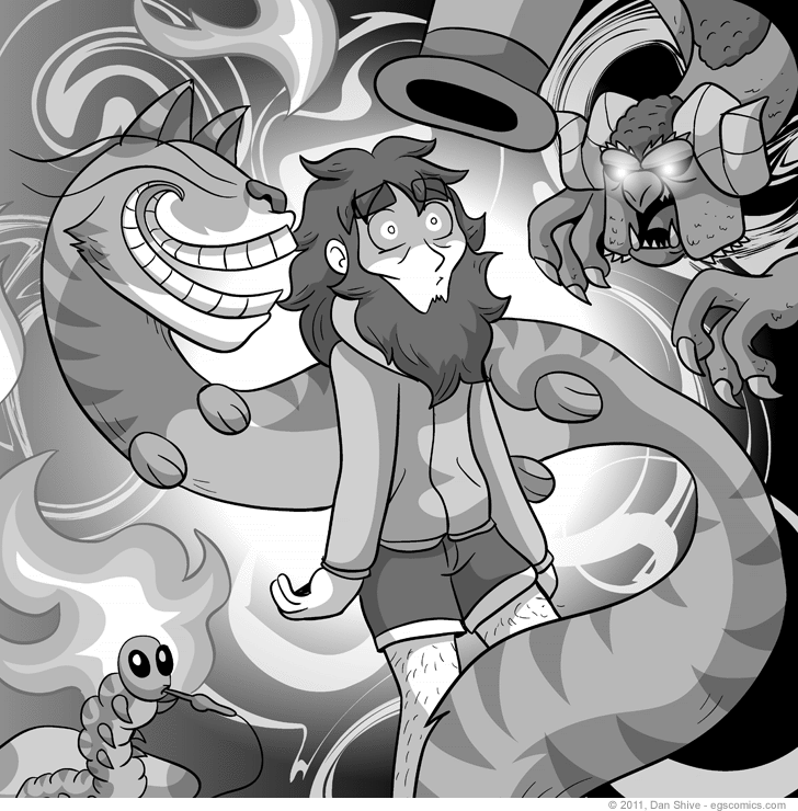 Monday's comic. Pretty much anything I could say about this image was said in that comic's commentary, so if you're interested, look there. The linework in this version is a bit thinner, however, which works better with the larger size the larger size.