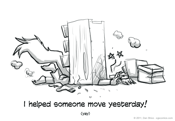 While it is true that I helped someone move yesterday, I did not wind up with an upside-down dresser on my head. I'm not even certain how I could have accomplished such a thing.