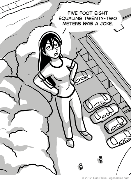 For those wondering, Susan has grown to 5'8", or some other number if using the metric system. I'm not that great with conversions, but I think this makes her about 22 meters tall.Now, people were kind enough to correct me, and I do appreciate the effort and concern for my brain, but this was definitely a joke. In actuality, the inch to cm conversion (2.54) is one of the few conversions I know off the top of my head, and if it wasn't and I was being sincere, I would have looked it up.
