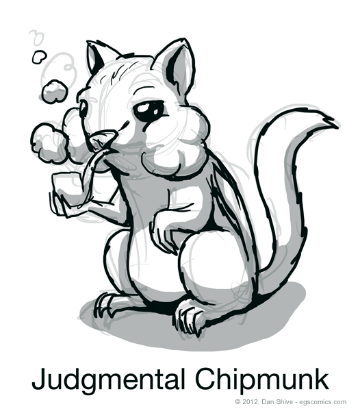I don't know why he's smoking a pipe. Beyond that, it all makes sense. He (she?) is a chipmunk, and he or she is judging you. With his or her judgement. You know what you did.
