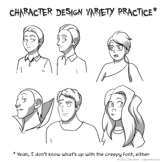 Okay, here's the dealio. I am on a quest, a journey even, to vary the character designs more while remaining recognizable as the EGS style. These are some of my sort of randomized attempts to try that. Granted, I think I somehow wound up drawing