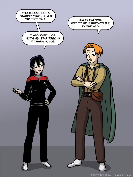 And no, I don't think Sam had a "thing" for Frodo. I'm quite convinced it was platonic love, and that his romantic interests were truly towards that one lady hobbit whose name I forget (sorry, lady hobbit). As for whether Frodo had a "thing" for Sam, on the other hand... I'm not saying he did, but I have no objections to the hypothesis, let's put it that way.