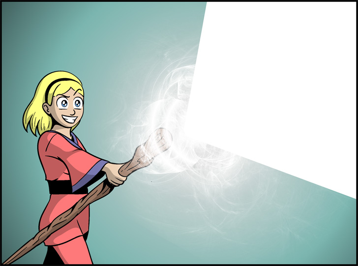 The last two color sketchbooks were panels people wanted to see in color, and this was another one that was requested. I was hoping to add color to the magic effect itself, but it would have to be done by way of filter, and I didn't like any of the results I managed to get.