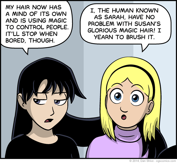 One joke I heard in response to the comic this is from was people shipping Susan with Sarah as a result of the hair hug. Or, alternatively, specificallly shipping Susan's hair with Sarah. I'm not entirely sure how that would work and I've chosen not to dwell on it.