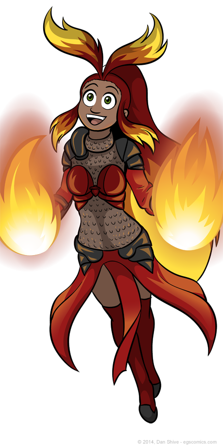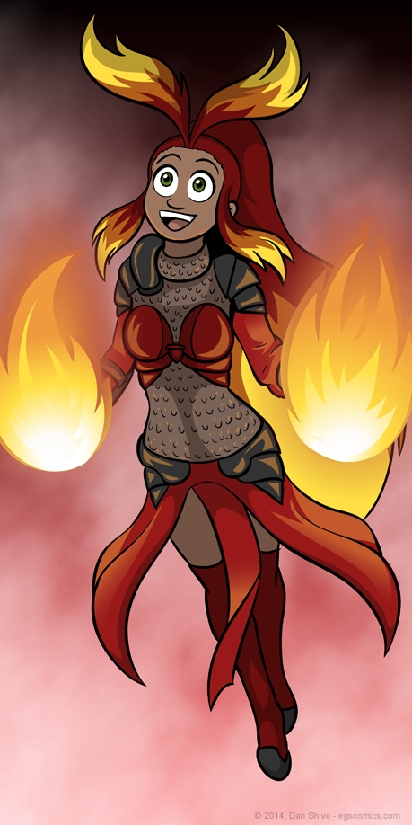 Incidentally, I went nuts figuring out how to get a fire effect I was happy with. I have fancy Photoshop brushes that work just fine for background fires, but things get complicated when the fire is doing stuff like this. I'm pretty happy with the end result.