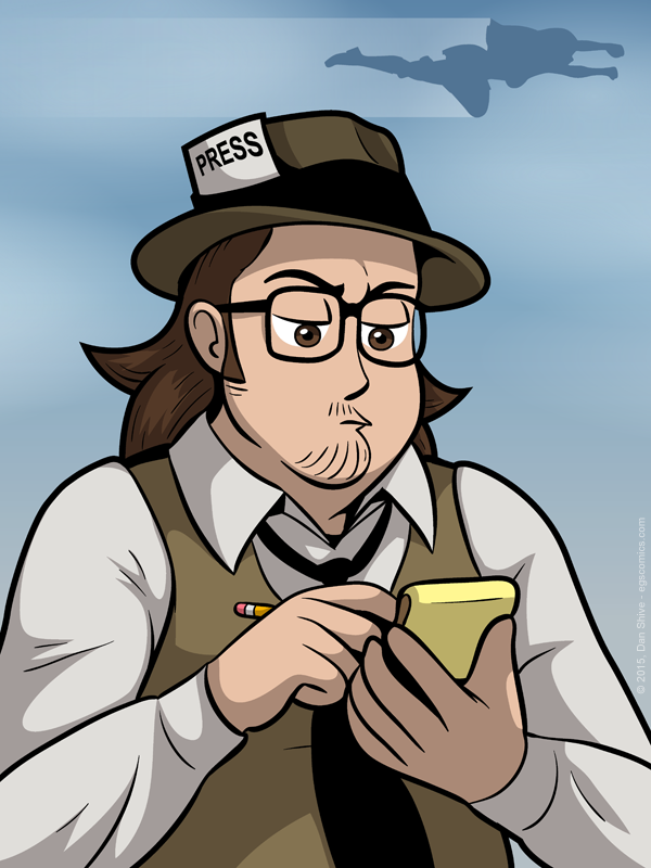 Cheerleadra wasn't part of this request, but I felt that there needed to be something George was failing to notice, and a silhouette of one character over a simple background wasn't exactly anything close to resembling overdoing things. I was tempted to give George a 3DS, but that wouldn't exactly be old-timey reporting, would it?