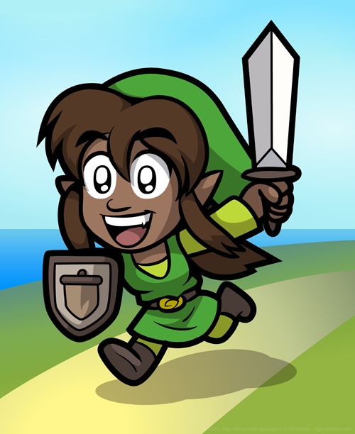 I knew I wanted to draw Grace as Link, but that begged the question of what style to draw her in. The obvious choice would have been in a style reminiscent of A Link To The Past, as that was the game she was excited to play.