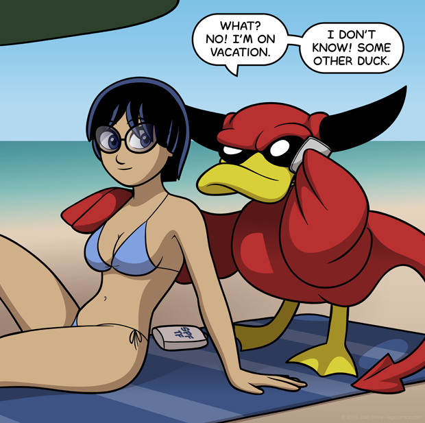 Not that there's much mystery to why there was an actual duck in that comic. There's only so many ways to turn "hey, is that a demonic duck of some sort" into a joke. One of those is to use an actual duck.