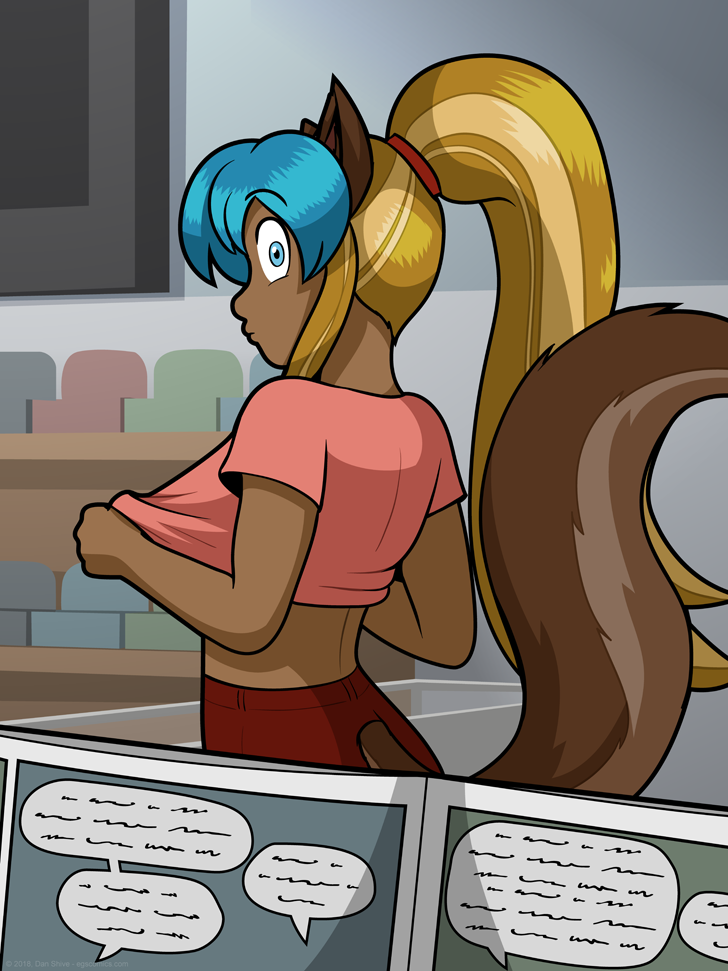 Normally, catching someone in the middle of changing their clothes would be more "hey now, not cool" or "sorry about that" than "neat!", but Grace was changing in the middle of the comic shop while working, and all you wanted to do was buy the latest issue of The Fantastic Cyborg Ninja Fox Women.