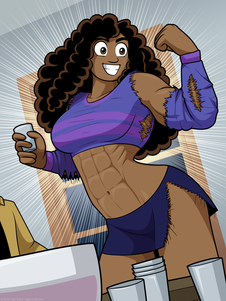 Poll Description - Rhea, clearly mid-party (Is thrilled to suddenly grow bigger and more muscular)