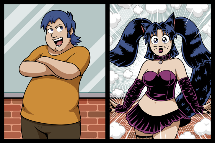 After: ...But they shouldn't have messed with Kitty, who has transformed him into a catgirl in a goth themed outfit!