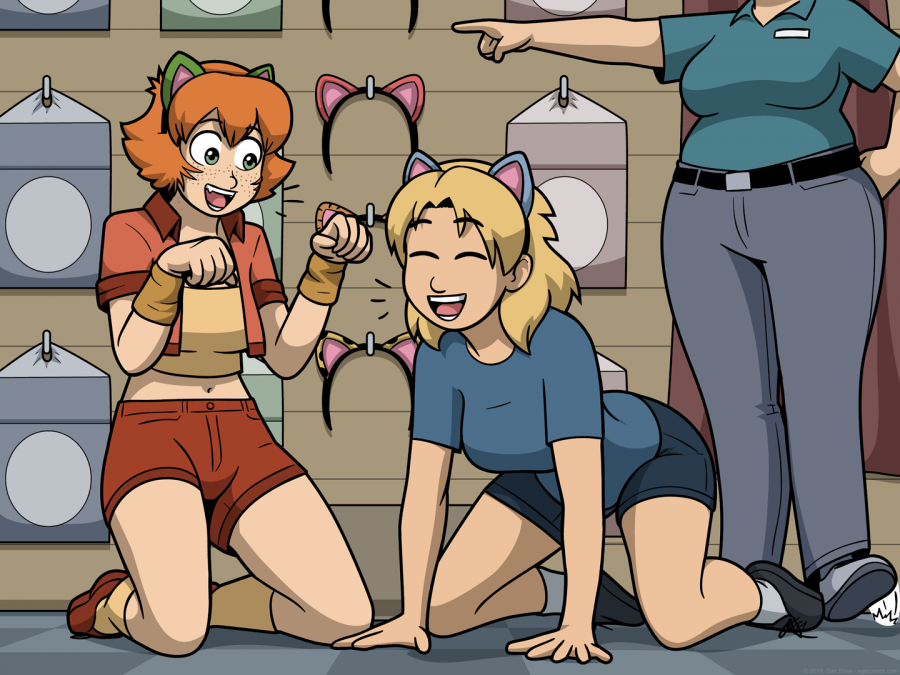 Poll Description - Catalina and Girl Elliot are hanging out! They're being silly while wearing novelty cat ears