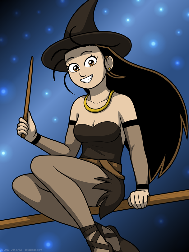 I'm not sure if she's actually flying on a broom? She might just be in front of a green screen or something. Granted, she is holding a wand, but that's clearly not Kevin the wand, so who knows how magical it actually is.