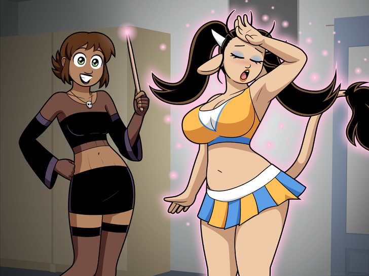 Oh noes! The mean, elitist cheerleader Ashley was bullying the misunderstood, loner goth Grace! Now Grace has given in to magical nonsense, and is transforming her bully!